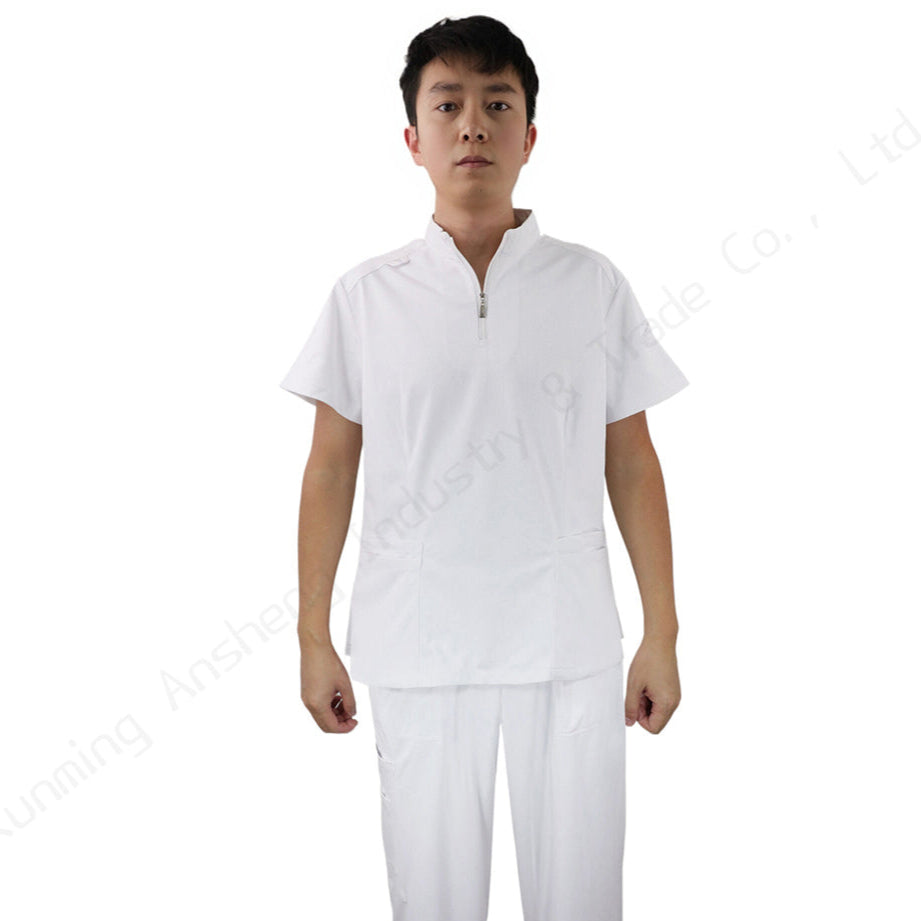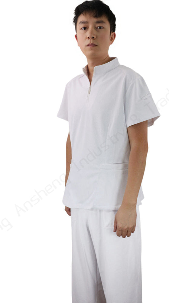 Unisex Medical Scrub Set – Sterile-Look 4-Way Stretch White Zip-Neck Uniform,OEM & private logo